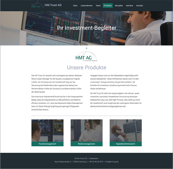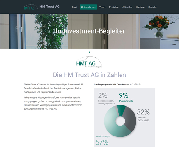 HM Trust AGResponsive WebsiteDesign & Realisation der WebsiteDesign-Farbschema, Fact-Sheets, Grafiken, Print